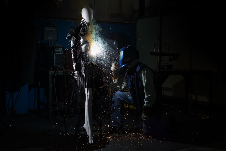 Image composition was based on merging two very different industry areas, for example the welding image combines welding and fashion studies.