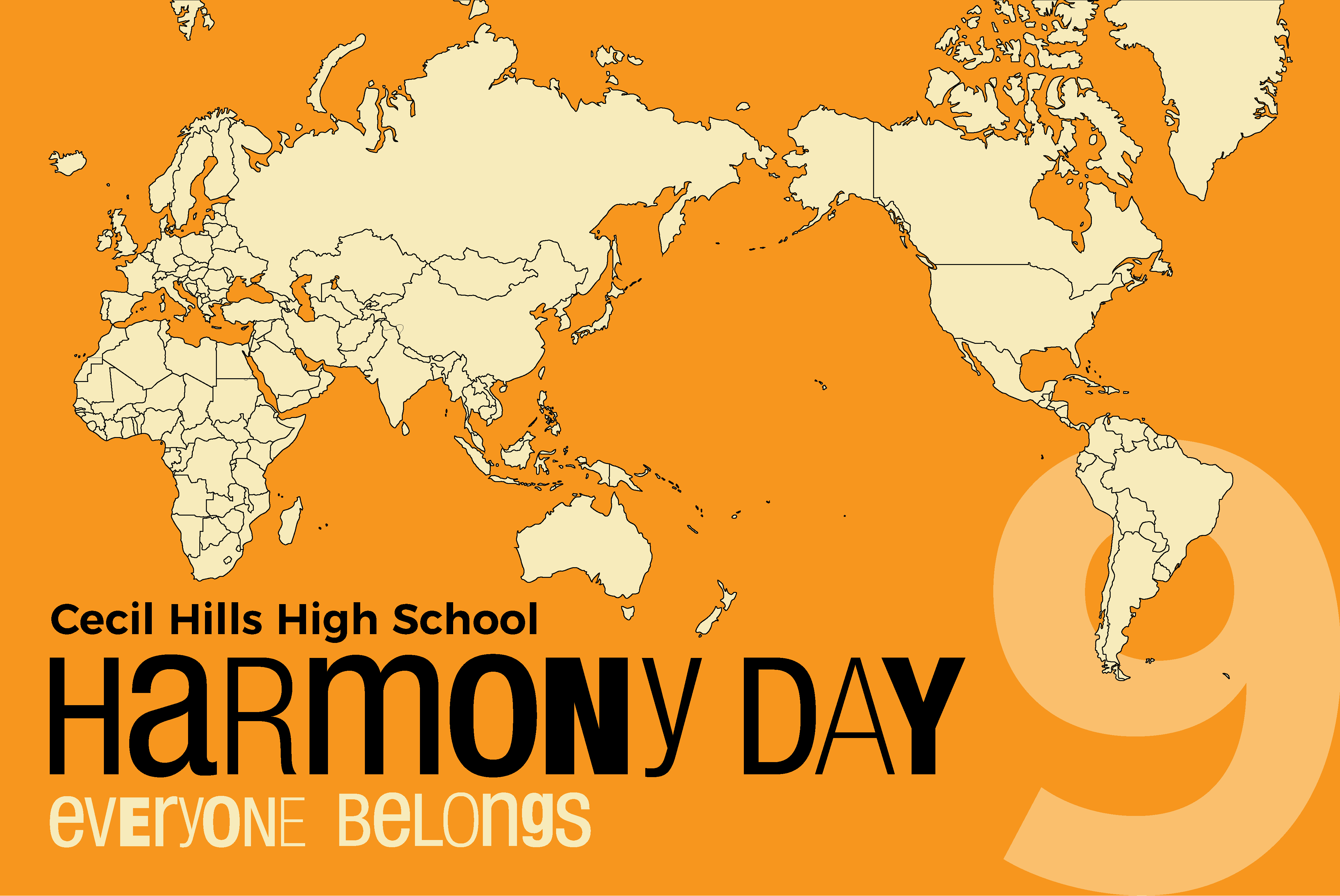 Cecil Hills High School Harmony Day banners. Individual banners were created for years 7-12 for students to add stickers to the location of their cultural heritage, showing the diverse backgrounds within the school community. Long banners were also created for the school gates.