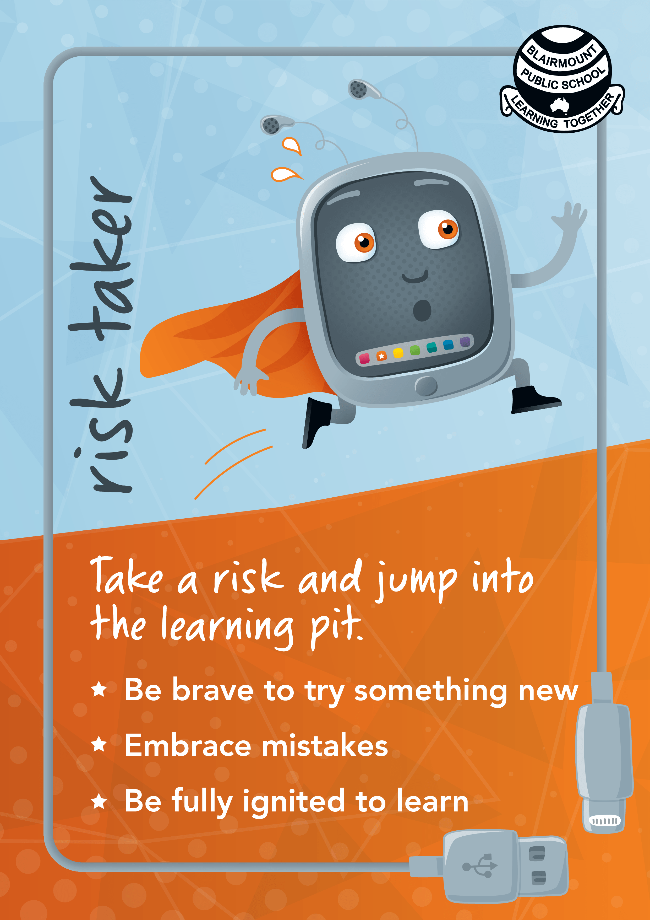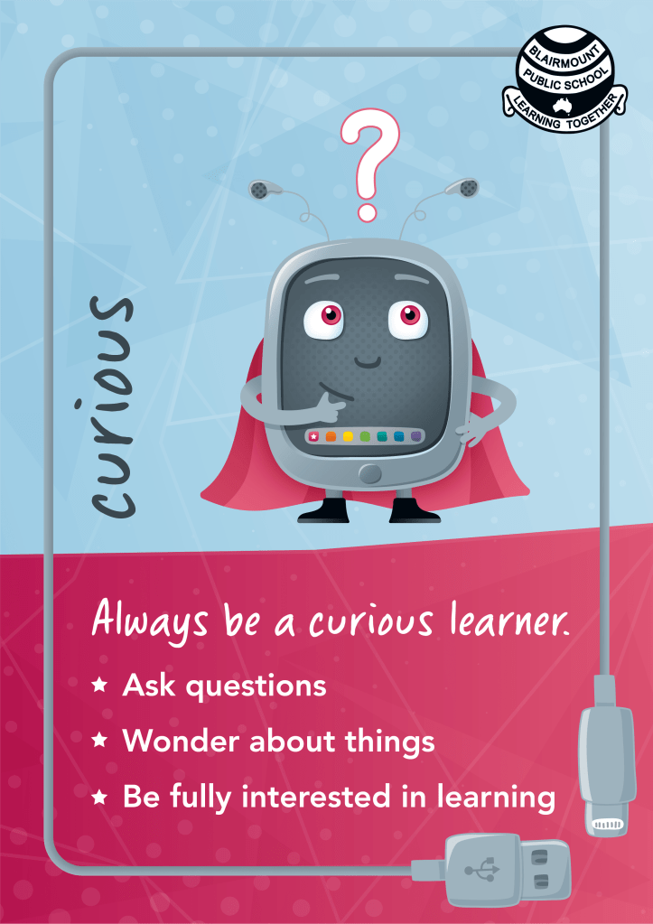 Designed a set of Learner Quality Posters using the disposition characters for Blairmount Public School. A set of A3 posters have been displayed in each classroom for students to refer to and practice the qualities of the disposition characters in their school environment.