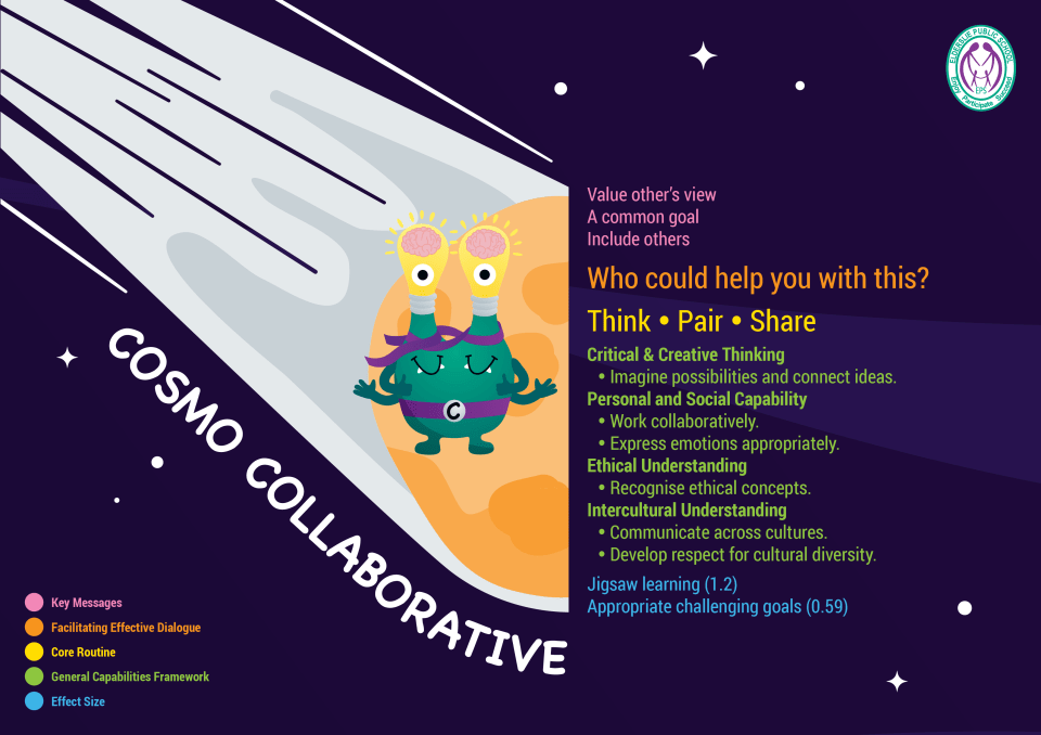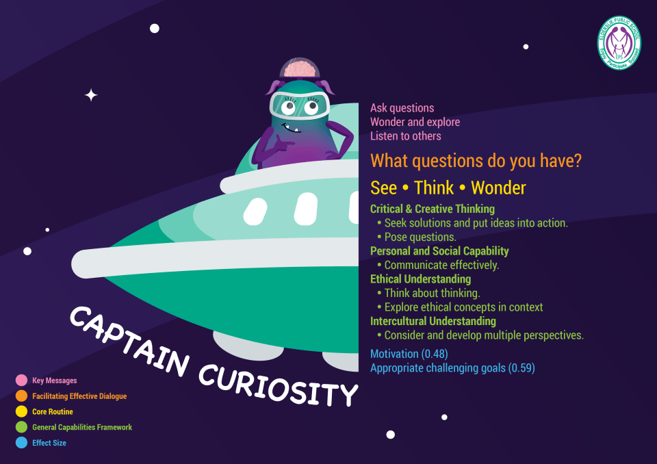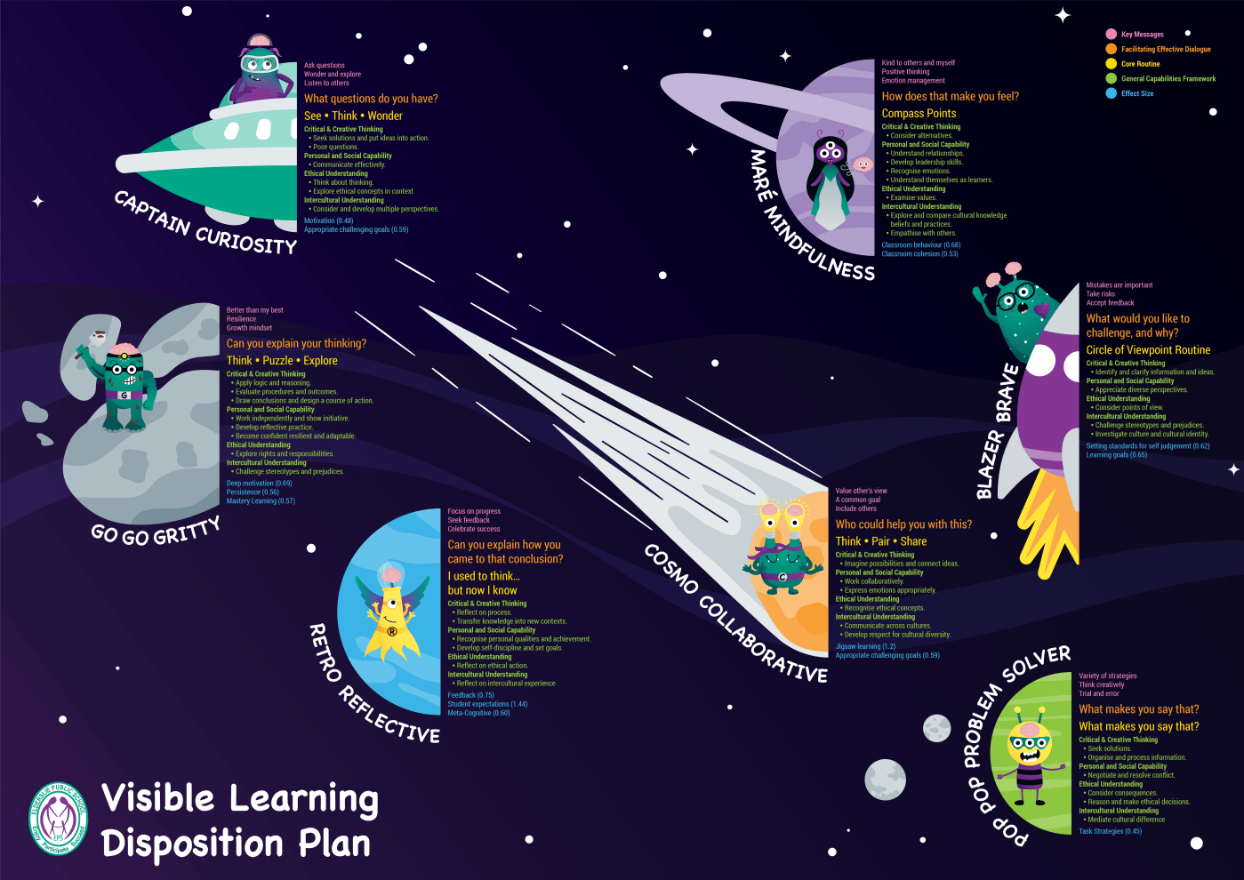 Designed set a set of Visible Learning Plan Posters using the disposition characters for Elderslie Public School. Single A2 poster design for school office and a set of individual A4 posters for the classroom.