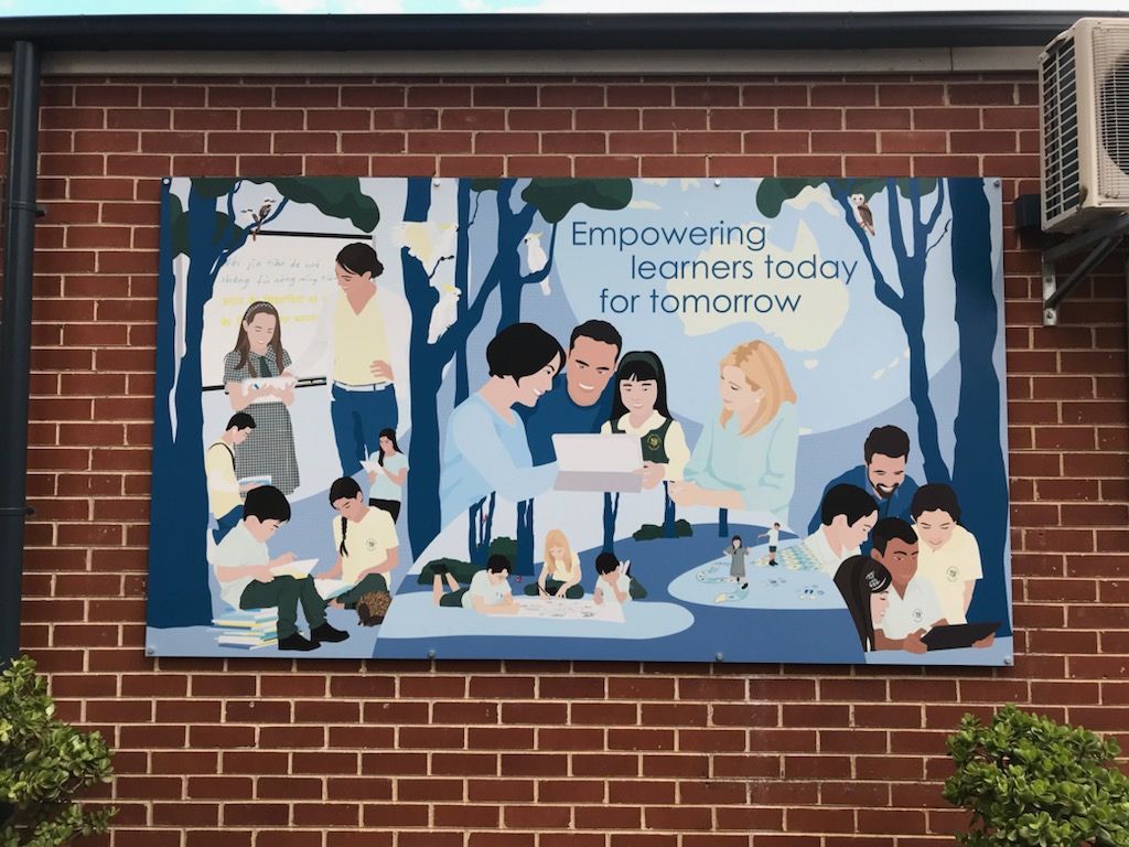 The motto for this vision is “Empowering learners today, for tomorrow” and the design includes imagery reflecting student agency, empowering children and preparing them for the world, literacy and numeracy and the beginning of their learner disposition journey. The school is surrounded by bushland and native birds and animals that are a unique aspect of school life.