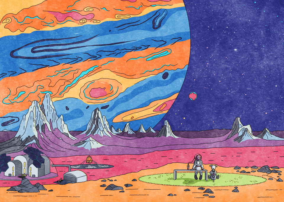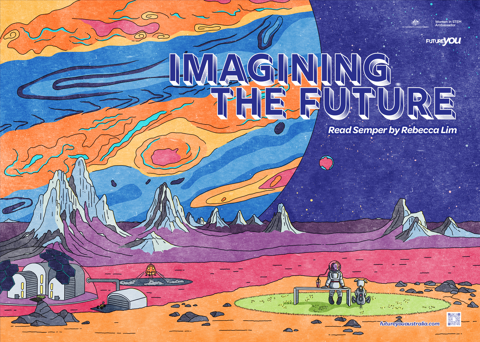 Illustrated a poster for Semper, one of Future You’s five interlinked stories, imagining life in the future and a future in space.