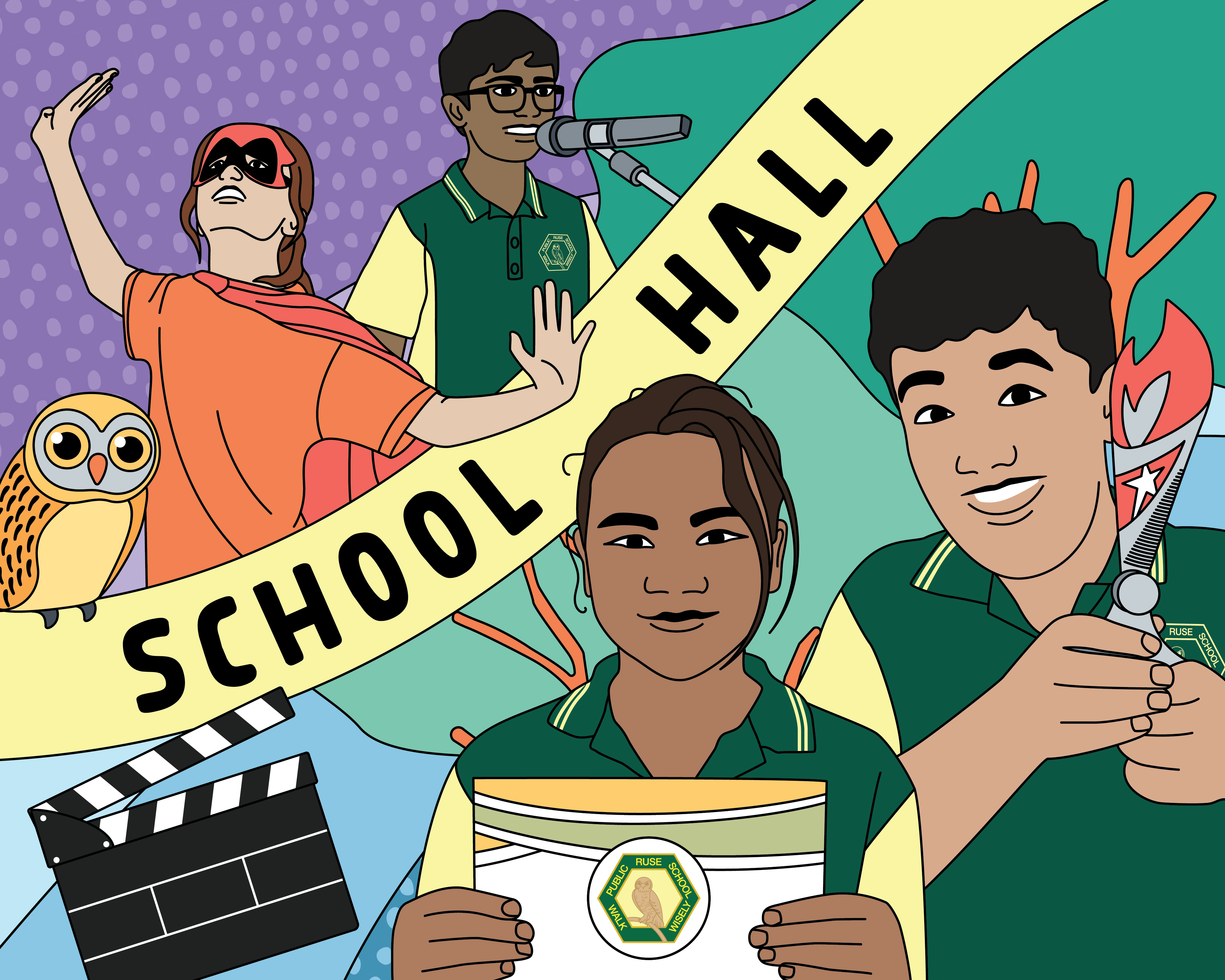 Designed and illustrated three signs for Ruse Public School. One for the Community Learning Hub, another for the School Hall, and a third emphasising the importance of attendance. These visuals aim to enhance the school atmosphere and promote community involvement.