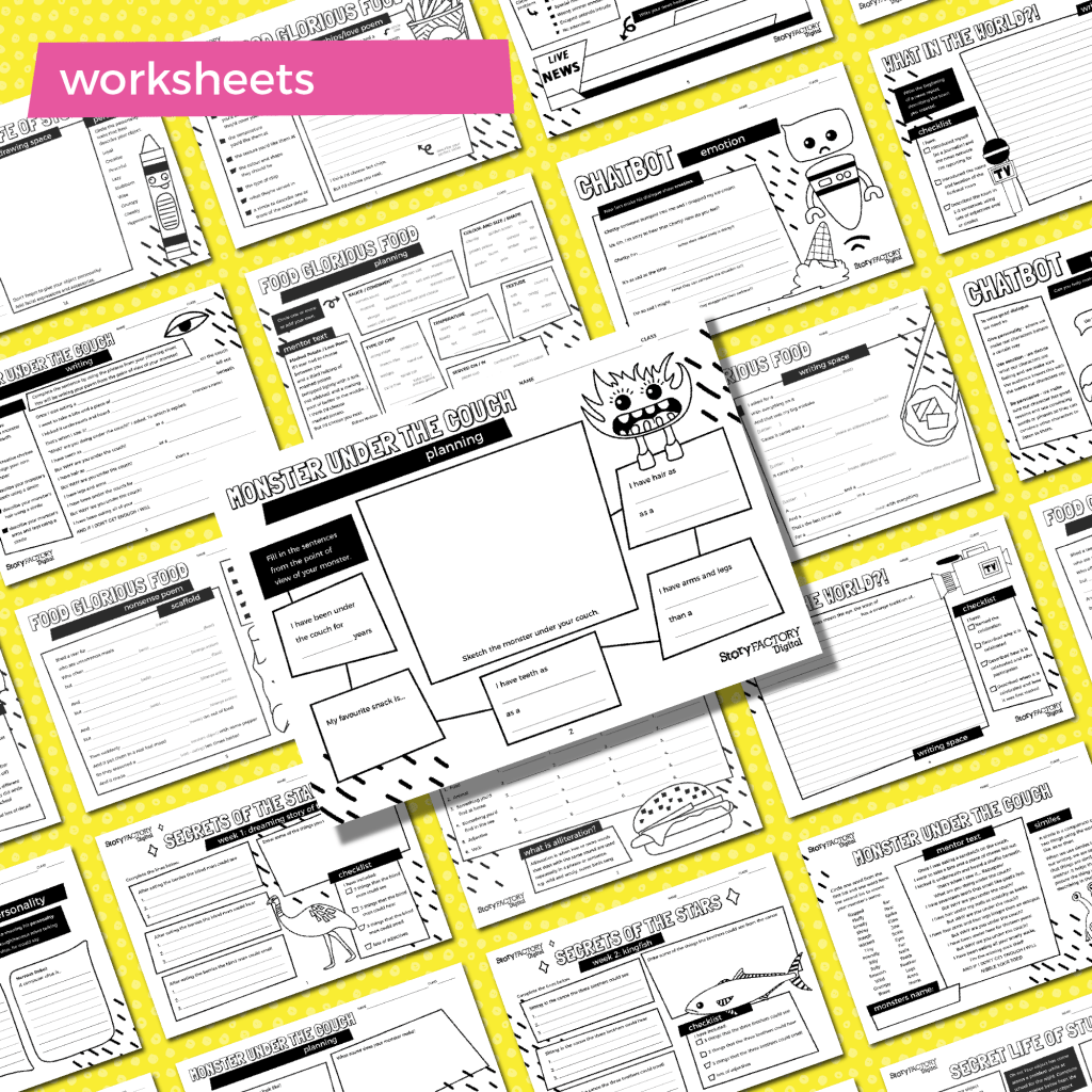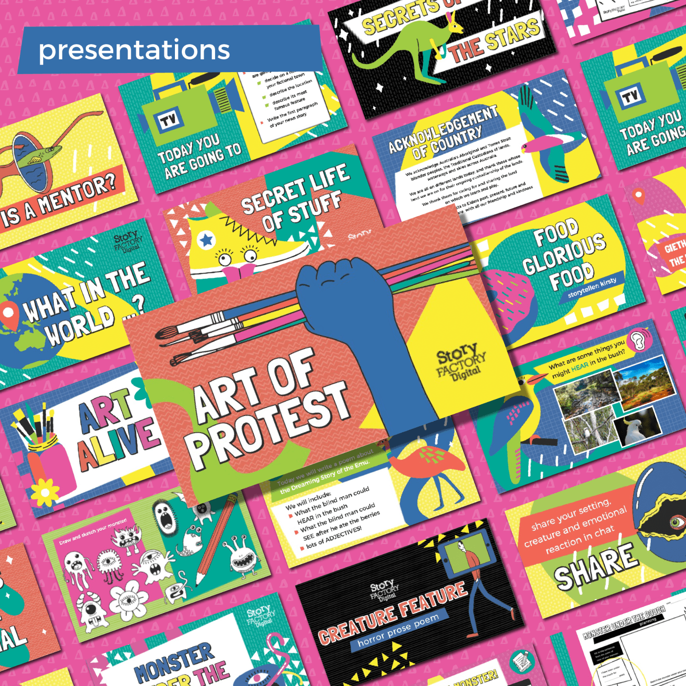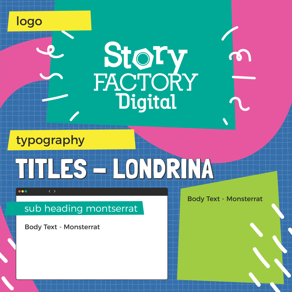 I developed a complete visual framework for Story Factory Digital’s programs, which included a detailed style guide, custom illustration assets, worksheets, and workshop presentations.