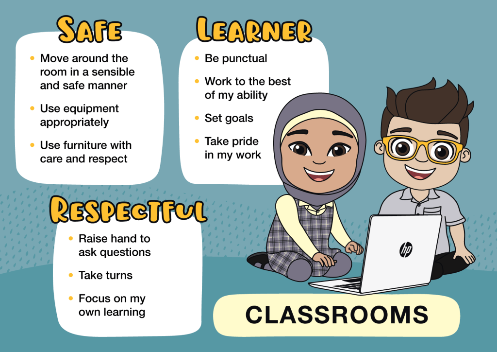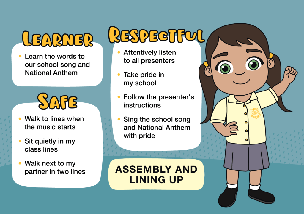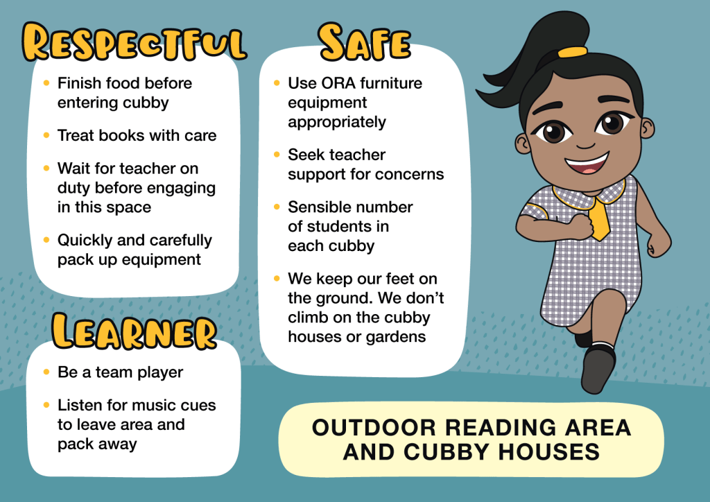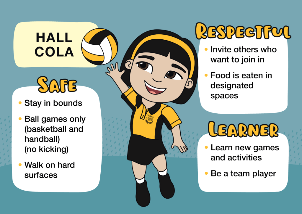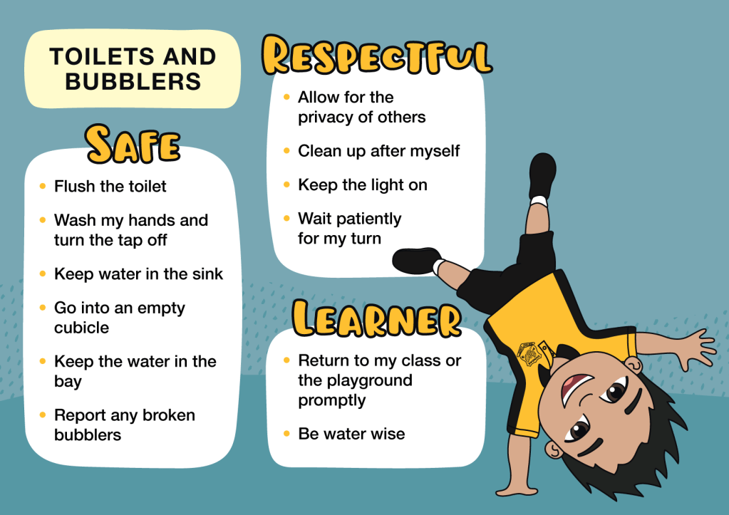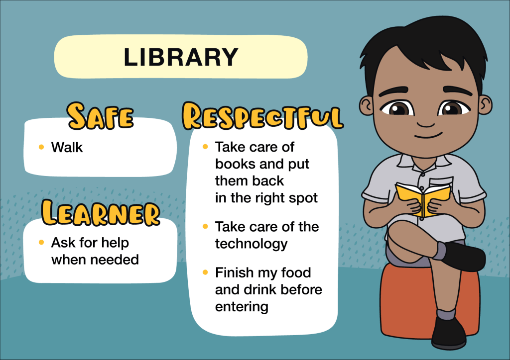 The set includes 11 custom student poses, which were used to create a series of Positive Behaviour for Learning (PBL) signs now installed around the school. Each sign outlines behaviour expectations for different areas—making it clear, consistent and easy for students to understand what’s expected.