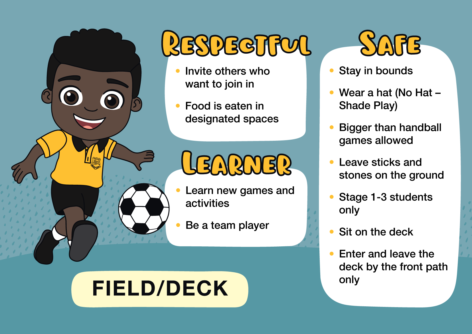 We also created a larger sign reminding students to Be Respectful, Be Safe and Be a Learner—a simple, powerful message brought to life with friendly, relatable characters.