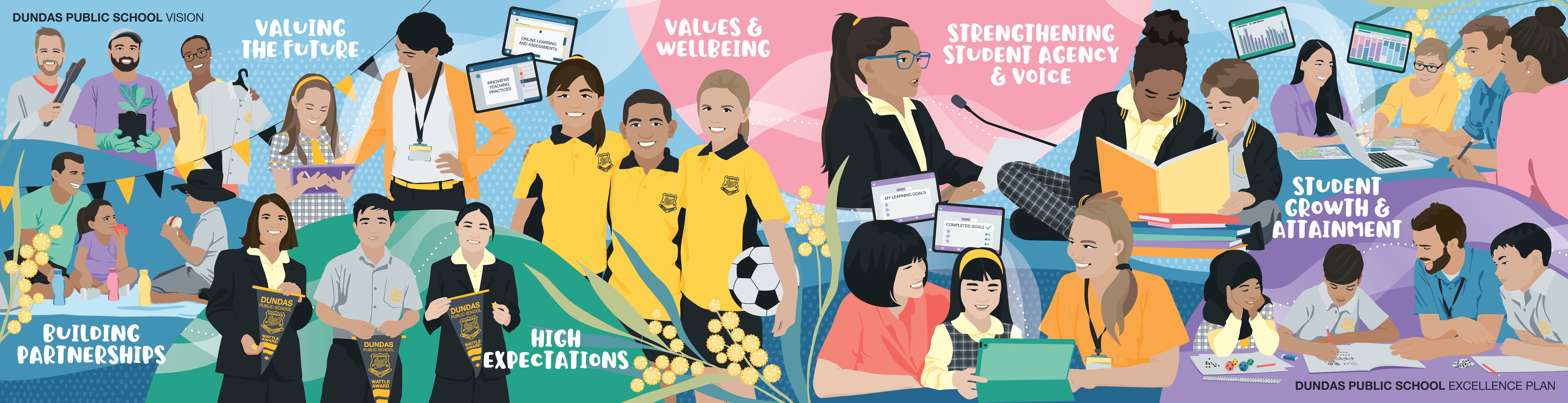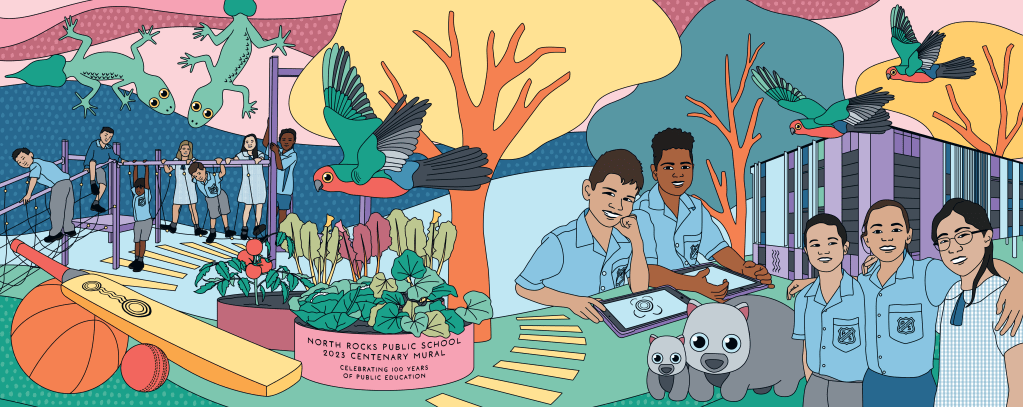 Illustrate vibrant murals that transform school spaces, celebrate your vision, and inspire a sense of community. Digitally illustrated, these murals can be printed on durable aluminium panels for outdoor display, shared on social media or presentations, or used on promotional materials.